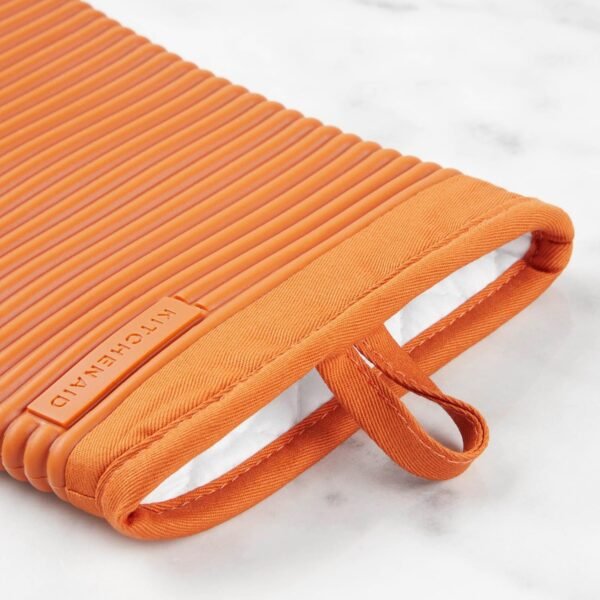 • DURABLE, HEAT RESISTANT SILICONE – The Kitchen Aid Ribbed Soft Silicone mitts are heat resistant up to 500 degrees Fahrenheit to safely shield hands from the heat while cooking and handling hot pans and dishes.
